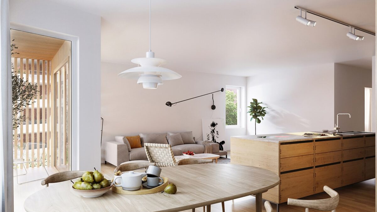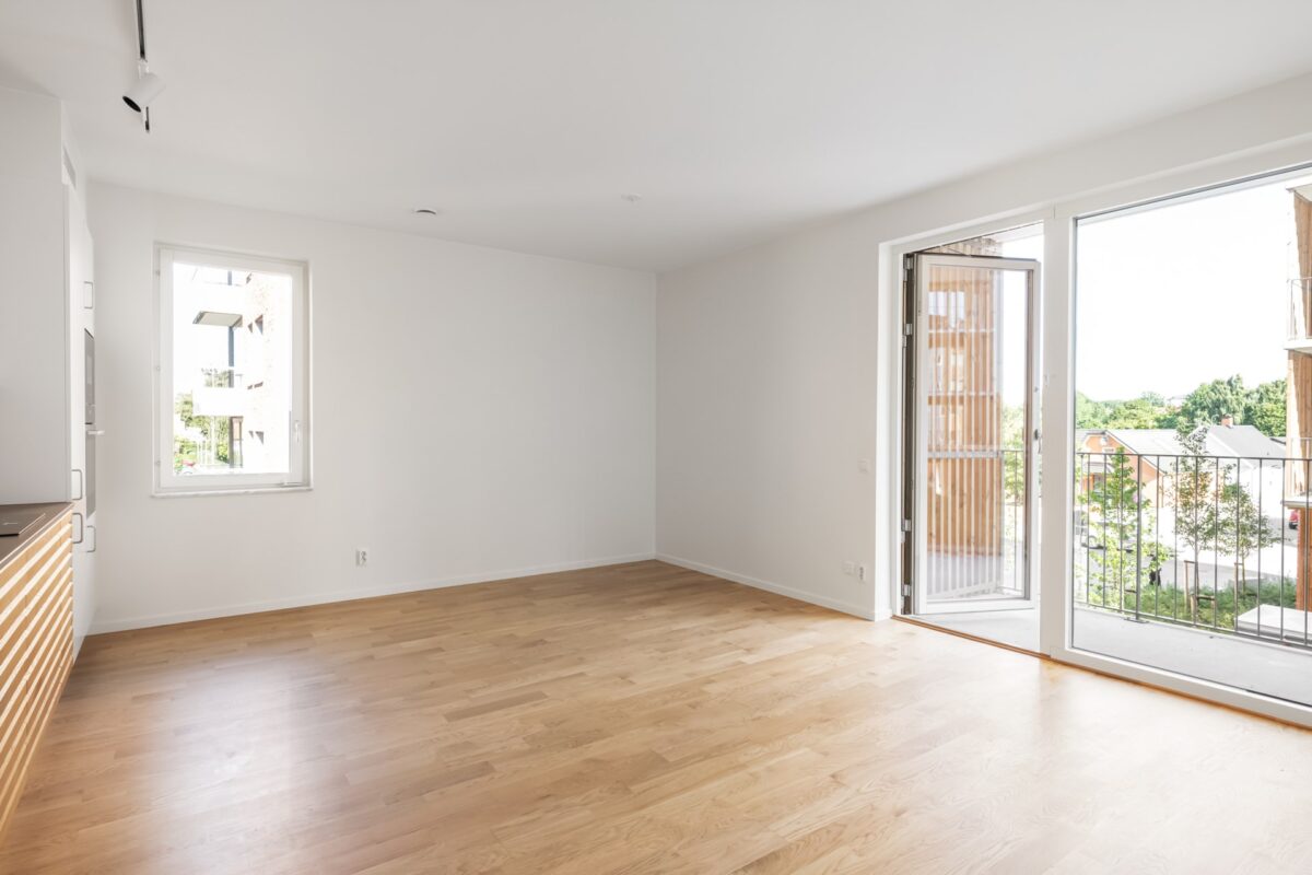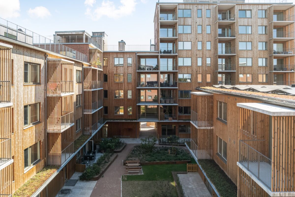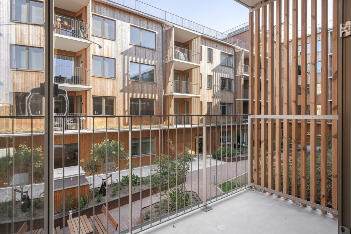 Lägenheterna är praktiskt indelade med stora sociala ytor runt kök och vardagsrum. De stora balkongerna blir en viktig del av de sociala ytorna. Tack vare de breda glasdörrarna kan gränsen mellan balkong och vardagsrum ibland suddas ut. Husets samtliga lägenheter som är större än två rum är genomgående från gata till gård. Många har dessutom ljus från ytterligare ett håll. På sådana sätt gör vi så att livet inne i huset blir så bra som möjligt.