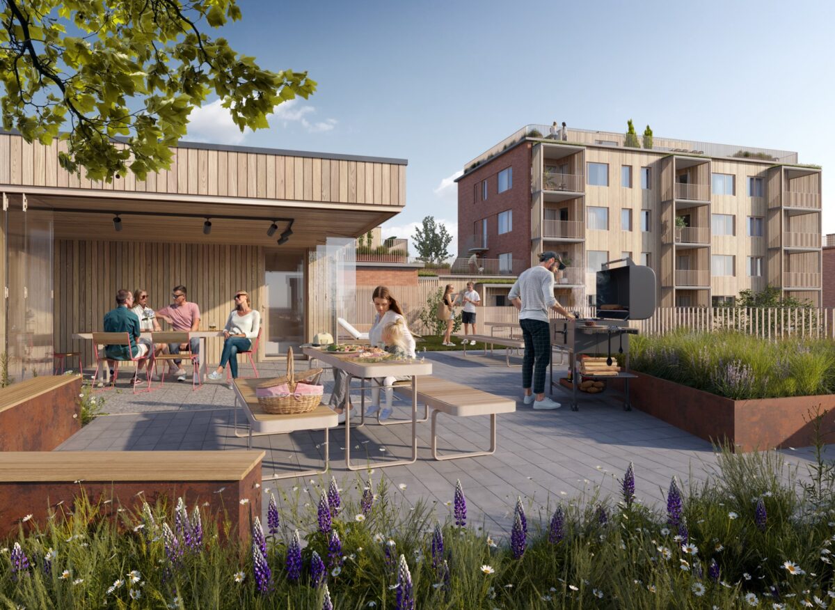 Mitt i centrala Eslöv, bland stadens vackra tegelhus, ligger Eslövs terrasser. En serie nya bostadskvarter som passar in i formen av den gamla stenstaden.