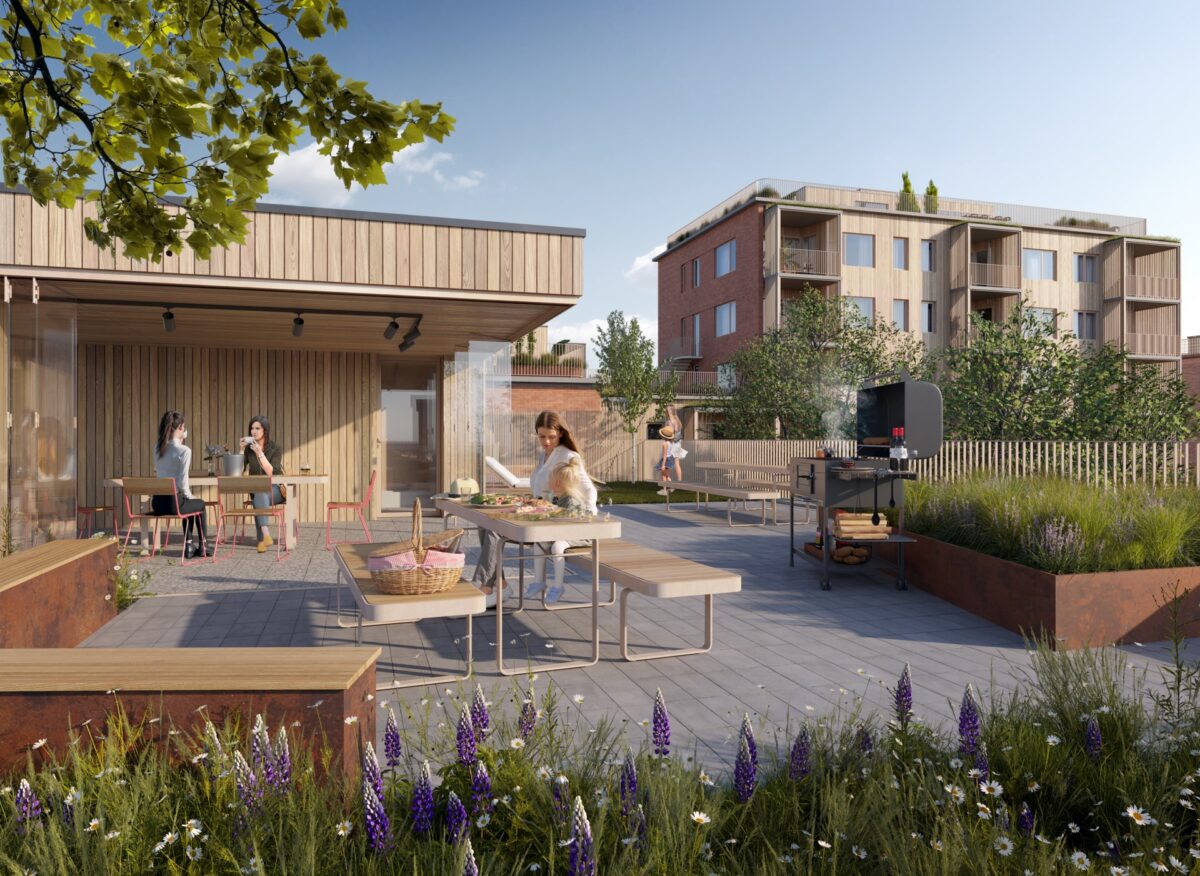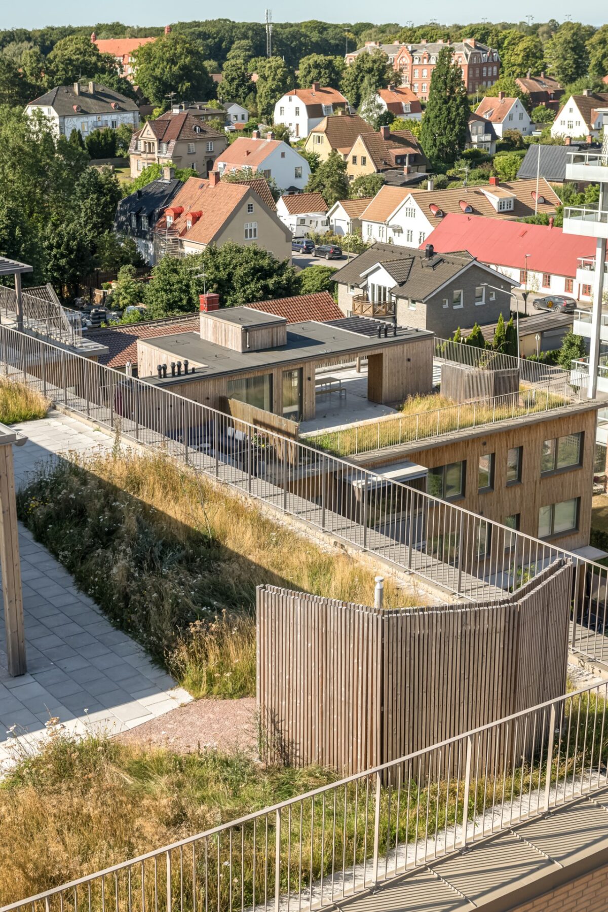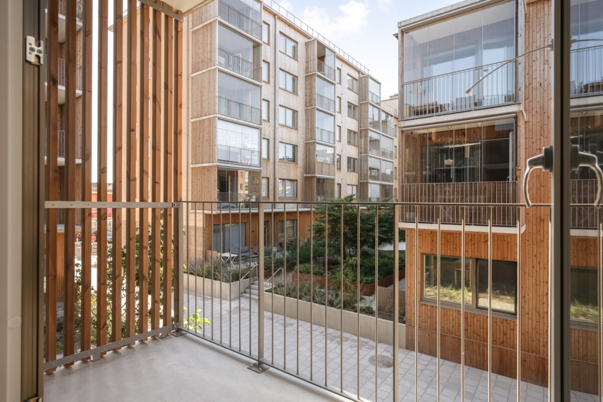 Härifrån når du även balkongen. Högklassigt kök från HTH med köksö - Lägenhetens hjärta är det lyxiga köket från HTH, utrustat med en praktisk och elegant köksö i Ek. Här kan du laga mat och umgås samtidigt, med gott om arbetsyta och smarta lösningar i köket. Golvvärme i hela bostaden - Med golvvärme i hela bostaden får du en jämn och skön temperatur året om, vilket skapar en varm och välkomnande atmosfär i varje rum. Stilrent badrum med tvättmöjligheter - Det moderna badrummet är utrustat med både tvättmaskin och torktumlare, vilket gör vardagen enklare och mer bekväm. Här kan du sköta din tvätt utan att behöva lämna hemmet, allt i en stilren och fräsch miljö. Perfekt läge i Eslöv - Belägen i ett attraktivt område med närhet till både centrum och tågstation, får du enkel tillgång till allt Eslöv har att erbjuda. Restauranger, butiker, skolor och grönområden finns inom bekvämt räckhåll, vilket gör ditt liv både enkelt och roligt. De gemensamma ytorna som innergård och tre gemensamma takterrasser bidrar till en trivsam och social boendemiljö.